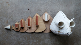 The various fins were created with brass strips and pieces of fabric from an old tent, soaked in superglue.